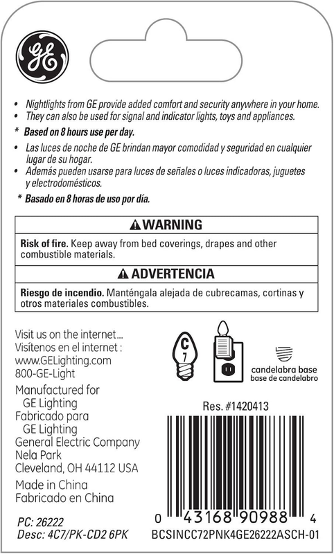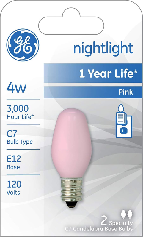 - Lighting 26222 4-Watt 14-Lumen C7 Night Light Bulb, Pink, 2-Pack