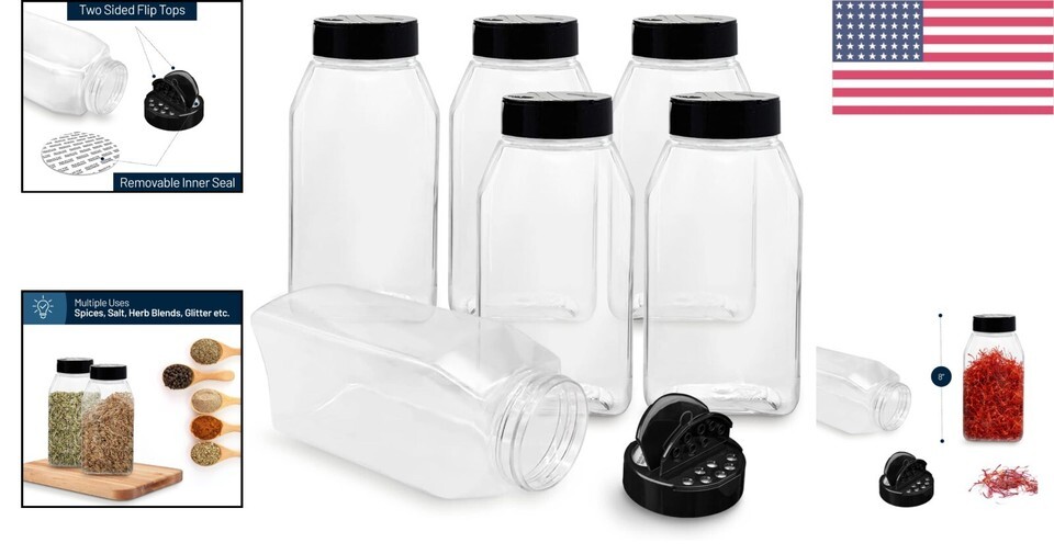 - Lightweight 6-Pack of 32 Oz Flip-Top Spice Jars - Perfect for Home Organization