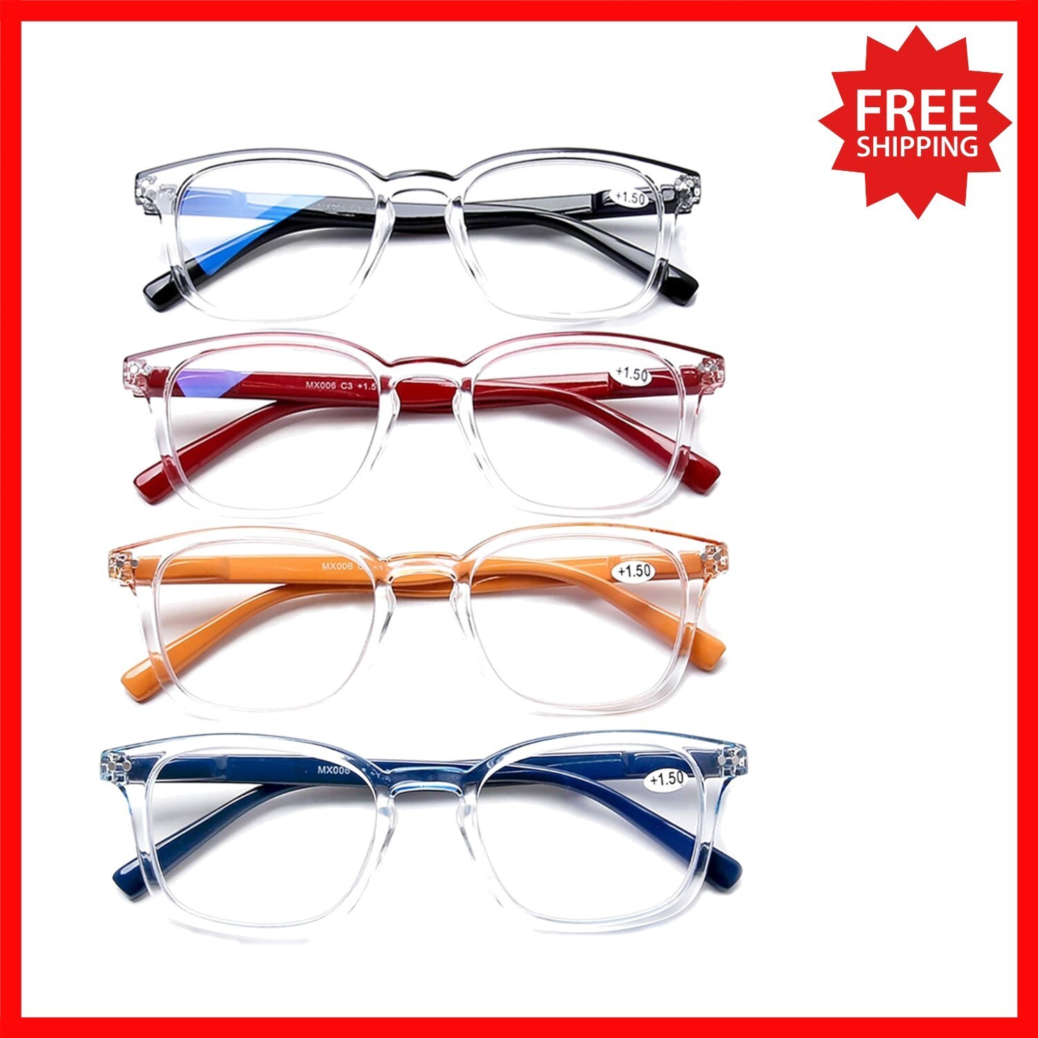 - Lightweight Blue Light Blocking Reading Glasses - 4 Pairs with Spring Hinges