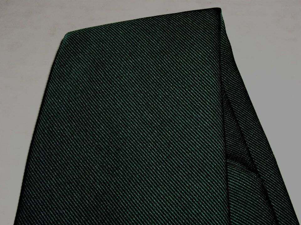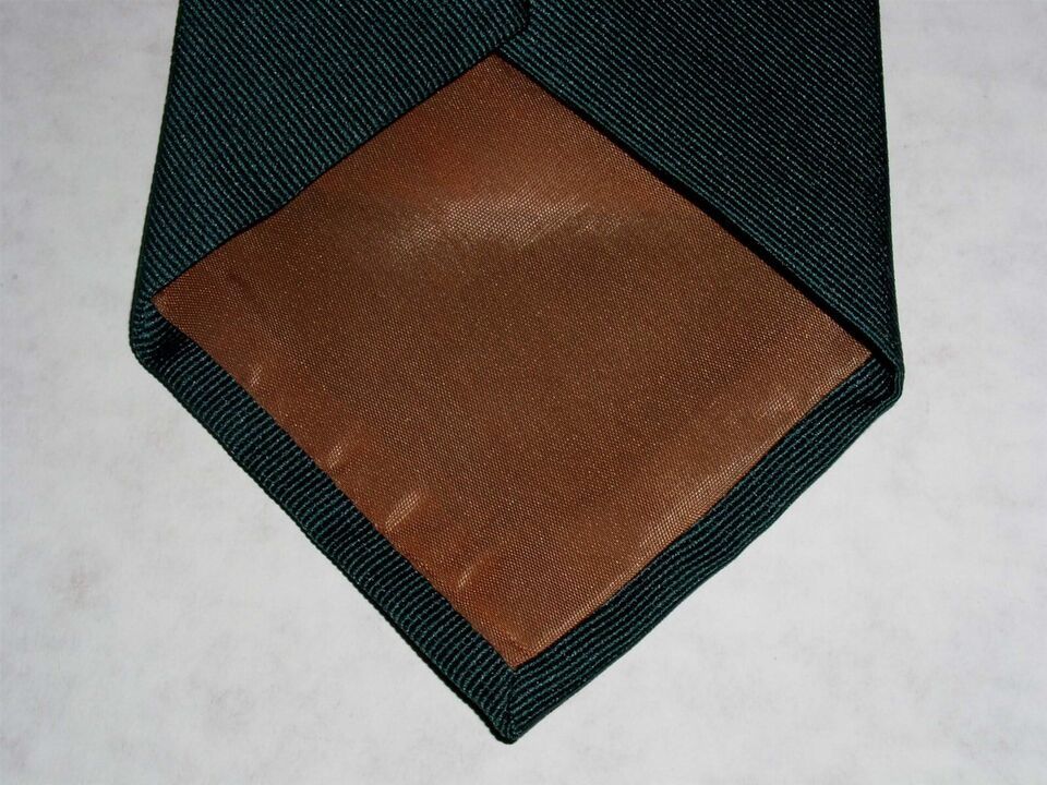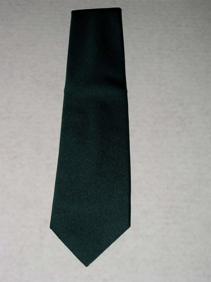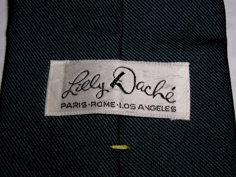 This is a vintage men's Lilly Dache necktie from the 1970's. Color is Hunter Green. Fabric content isn't stated but feels like a cotton/polyester or a wool blend. It's strong and bit weighty.
