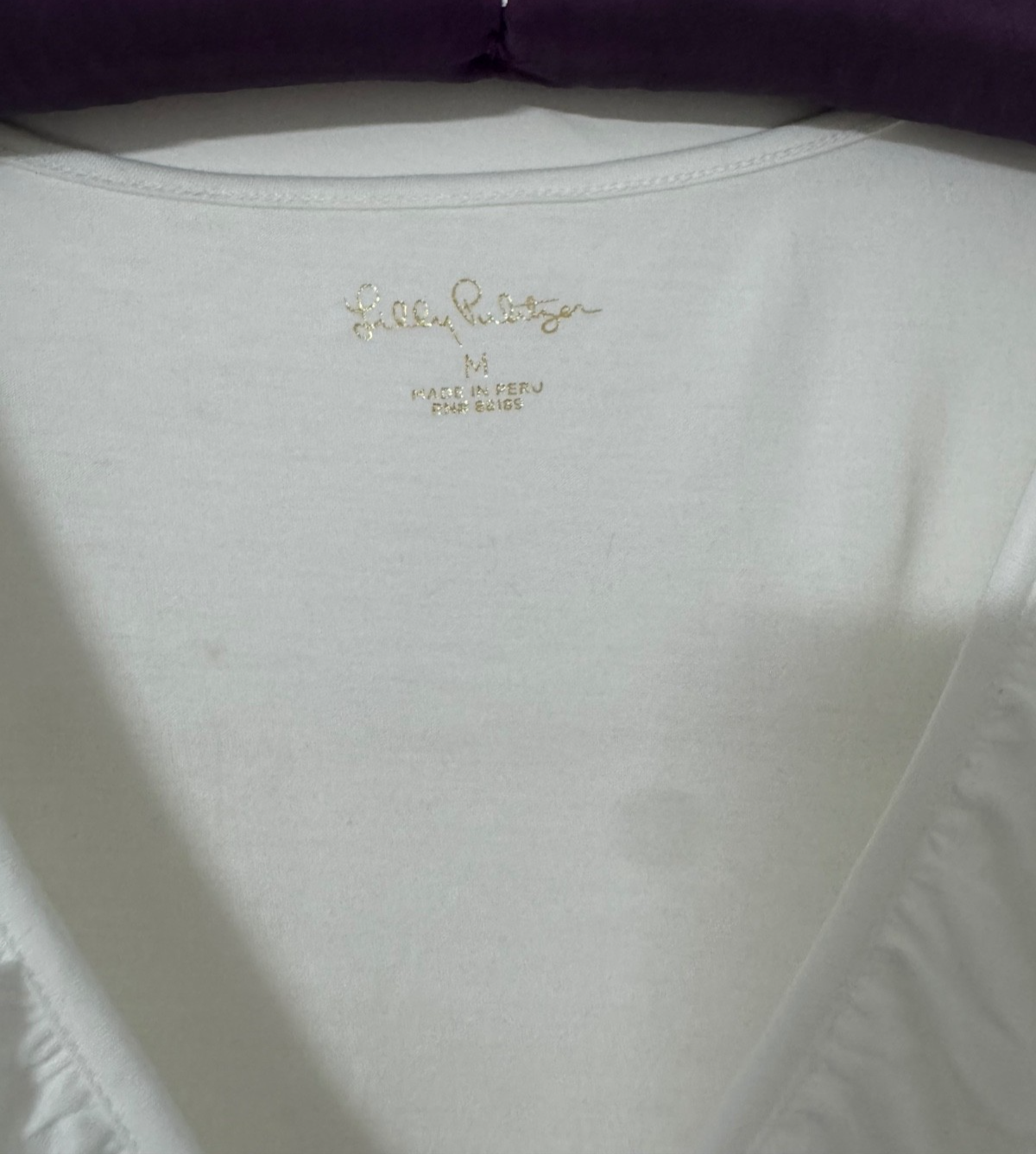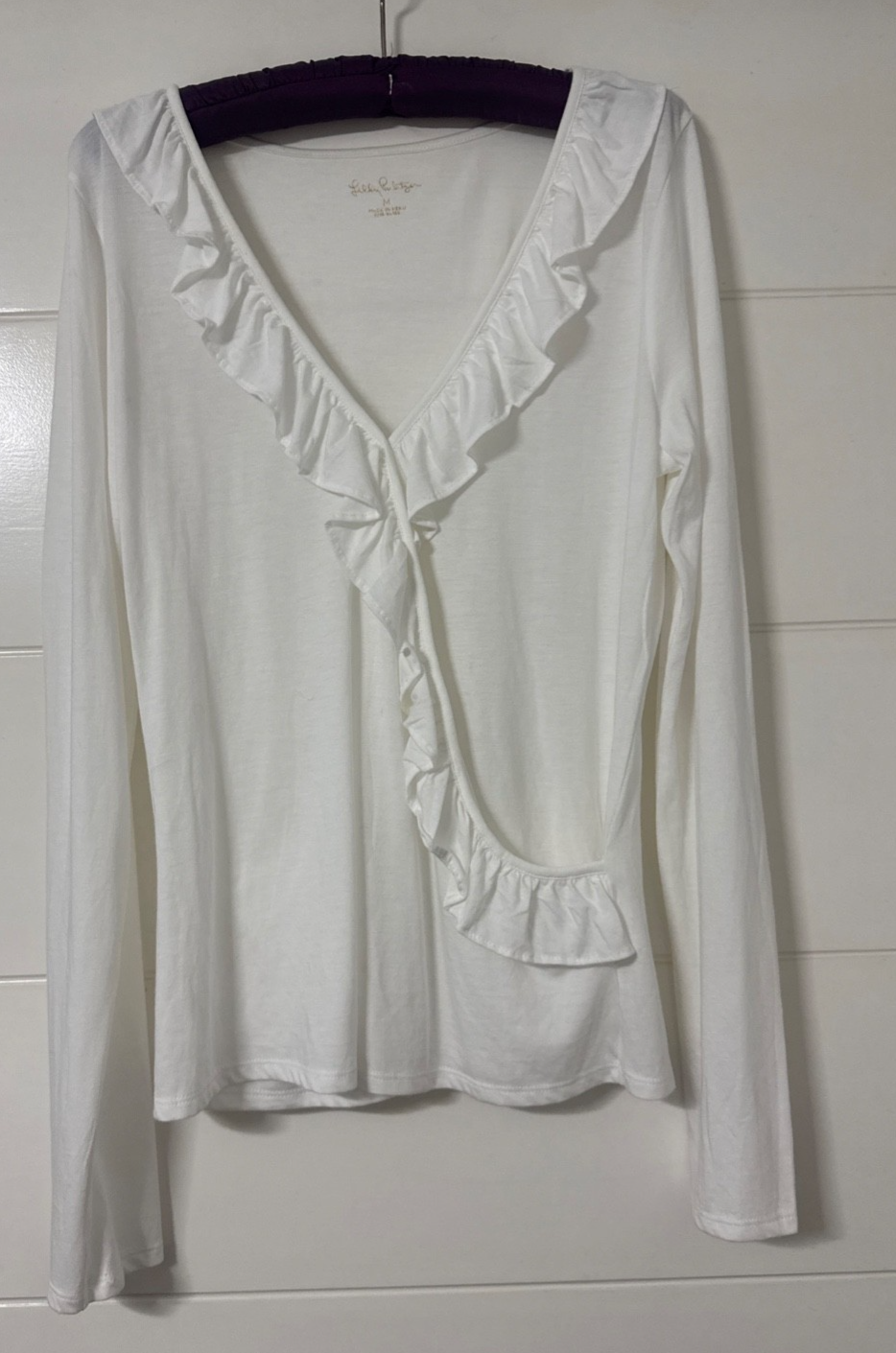 - Lilly Pulitzer Cream Resort White Loreda Long Sleeves Cotton Sheer Top Sz M NWOT