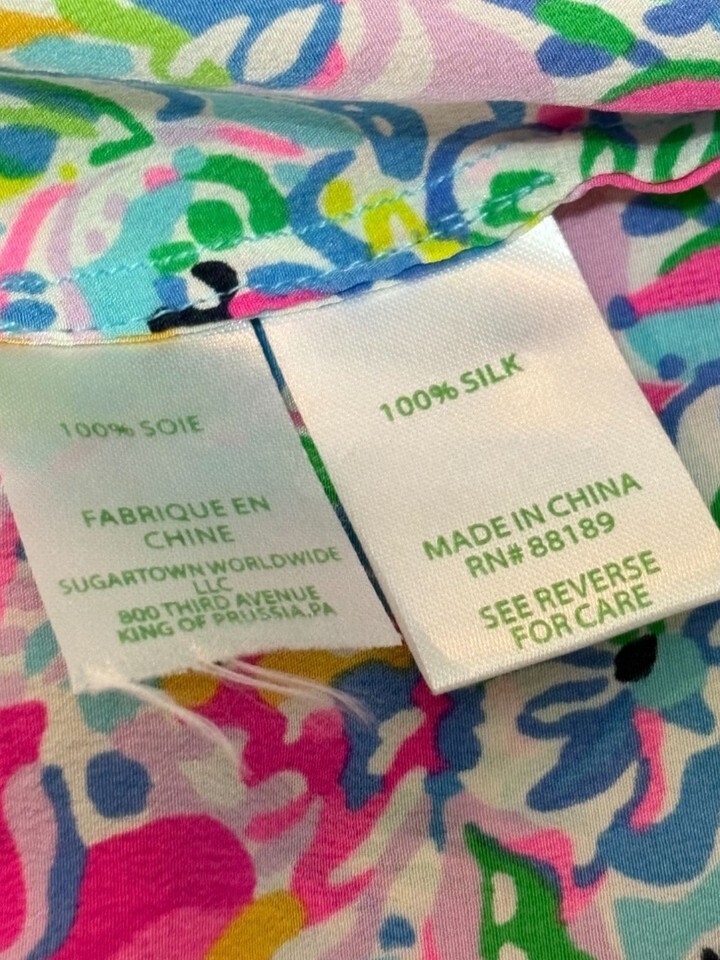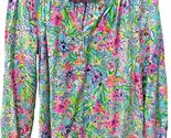 Lilly Pulitzer Elsa Alligator Isle Amalfi Blue Floral Print 100% Silk Blouse L