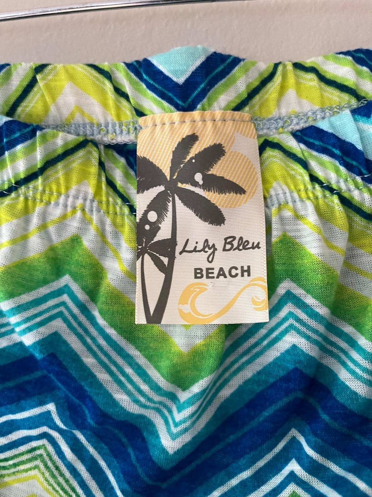 - Lily Bleu Sz L Strapless Chevron Maxi Casual Dress Neon Striped Belted