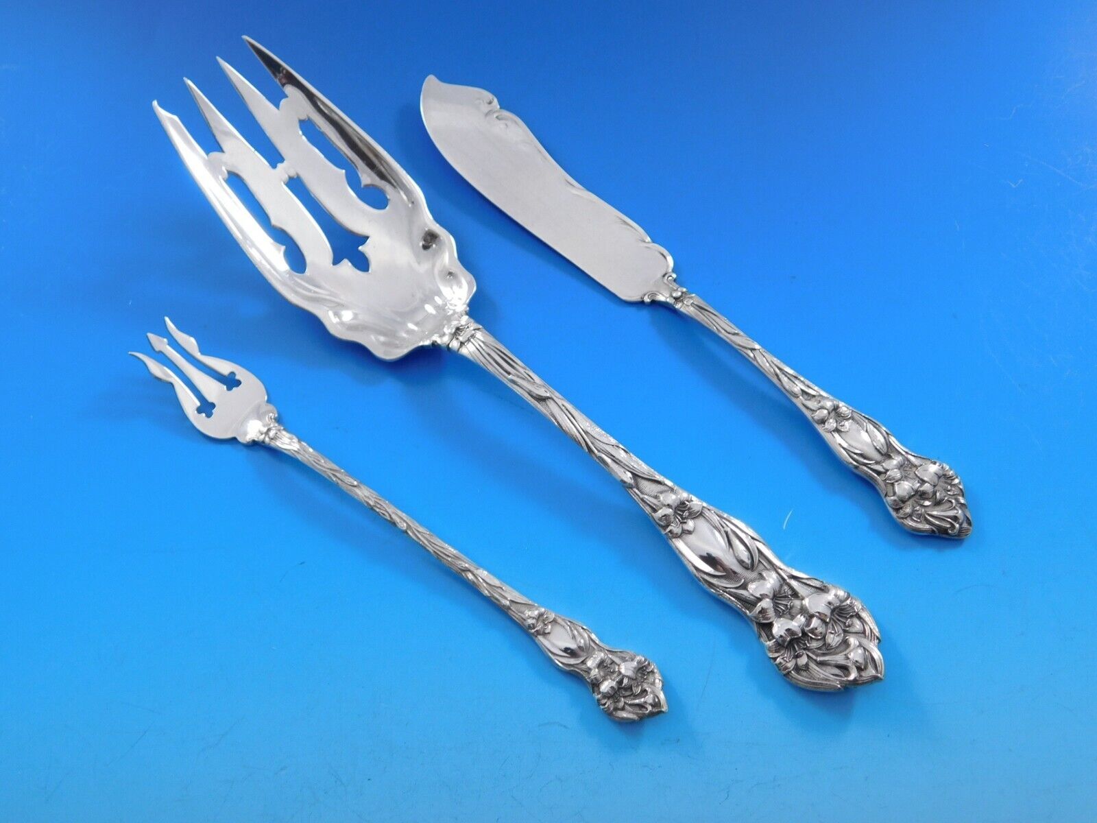 Scarce Lily by Watson, c1902, sterling silver Flatware set, 73 pieces. This set includes: