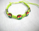 - LIME GREEN MACRAME w RASTA COLOR PEACE SIGN BEADS REGGAE TIE BRACELET / ANKLET