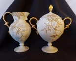 Limoges Elite France Creamer Sugar Bowl Pedestal Gold Floral SM Vtg 1896 Antique