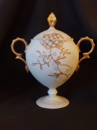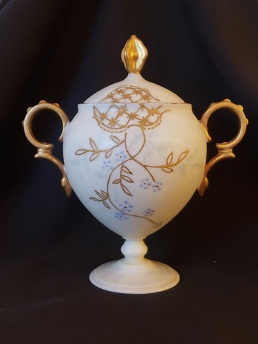 - Limoges Elite France Creamer Sugar Bowl Pedestal Gold Floral SM Vtg 1896 Antique