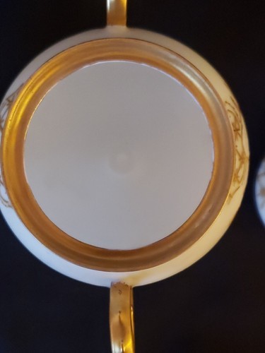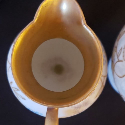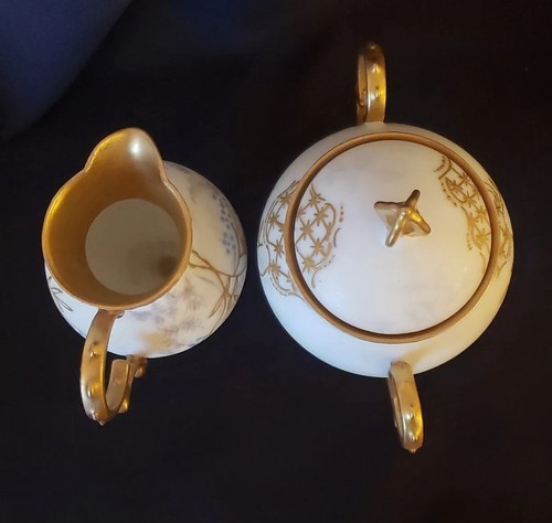 Antique Elite Works Limoges France hand painted gold Sugar Bowl with Lid and Creamer Pitcher