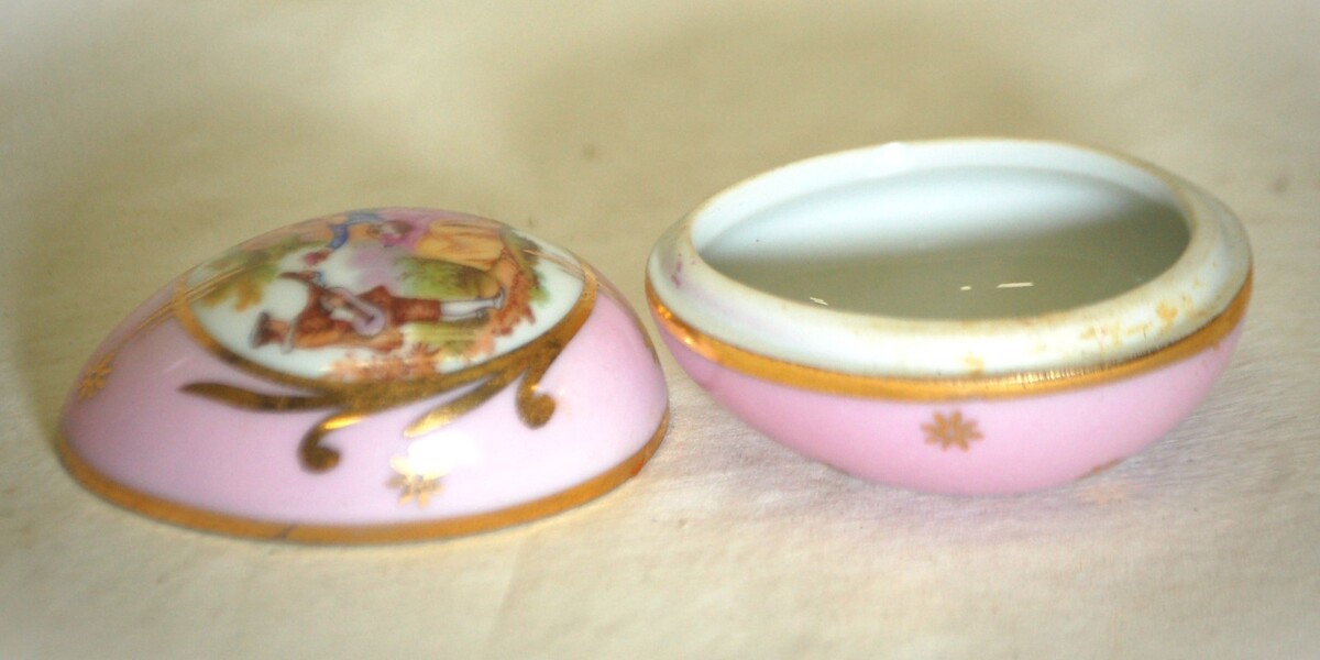 Limoges France Egg Art Pottery Trinket Box Hand Painted Victorian Couple