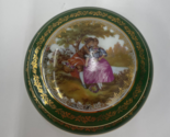 - Limoges Trinket box 22k Round Courting Couple Green Dresser Vanity