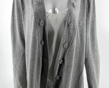 Linda Matthews Cardigan Sweater Plus Size 1X Gray Crochet Flowers Open Front