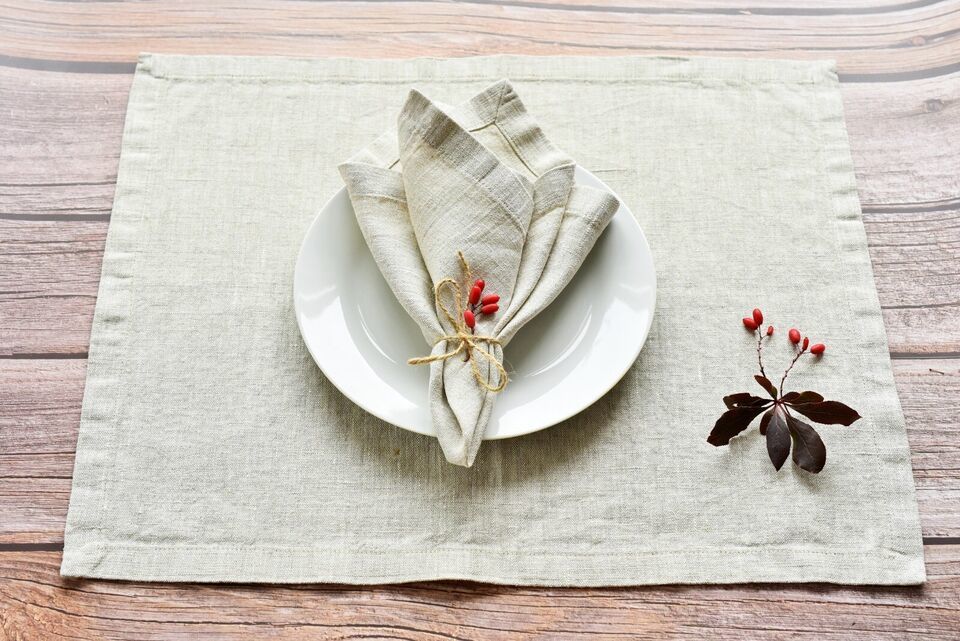 Linen Placemats and Napkins Set of 4, 6, 8, 12 Dinner Cloth Table Napkins