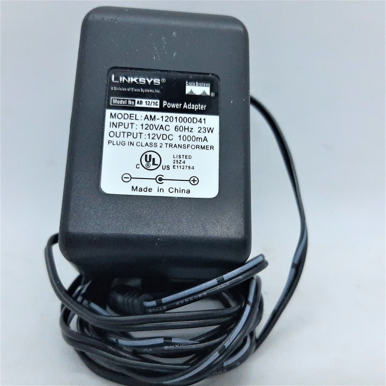 - Linksys AC Power Adapter Model # AM-120 1000D41 ~ DC Output: 12Vdc - 1000mA
