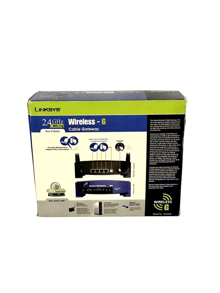- Linksys WCG200 4-Port 10/100 Wireless G Router 2.4 GHz WIFI Cisco New Open box