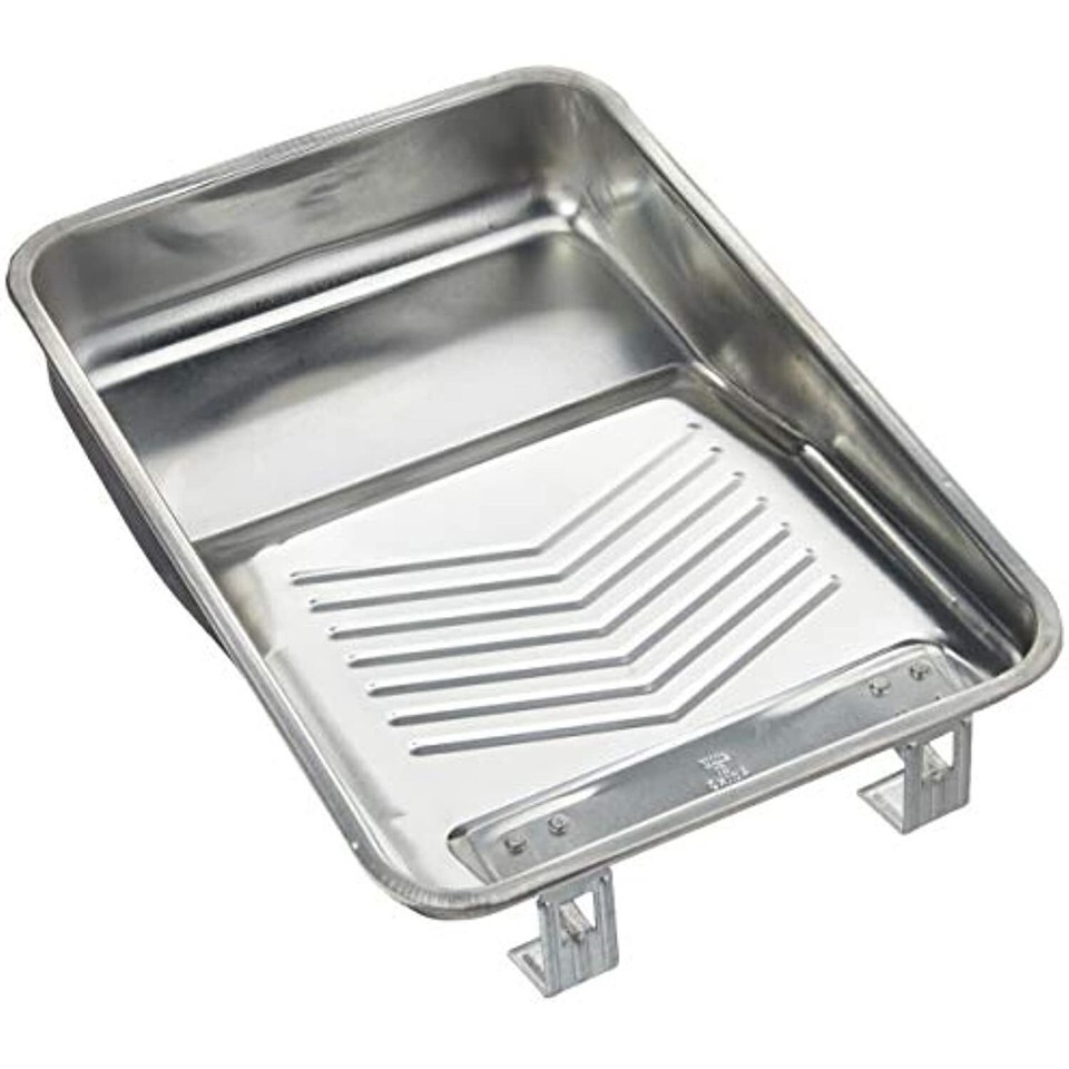 Heavy duty metal deep well paint tray with ladder grips. For use with 9 In. rollers.
