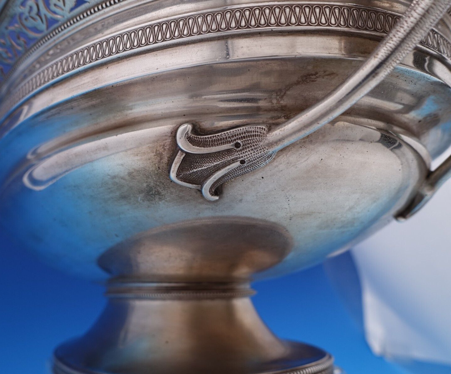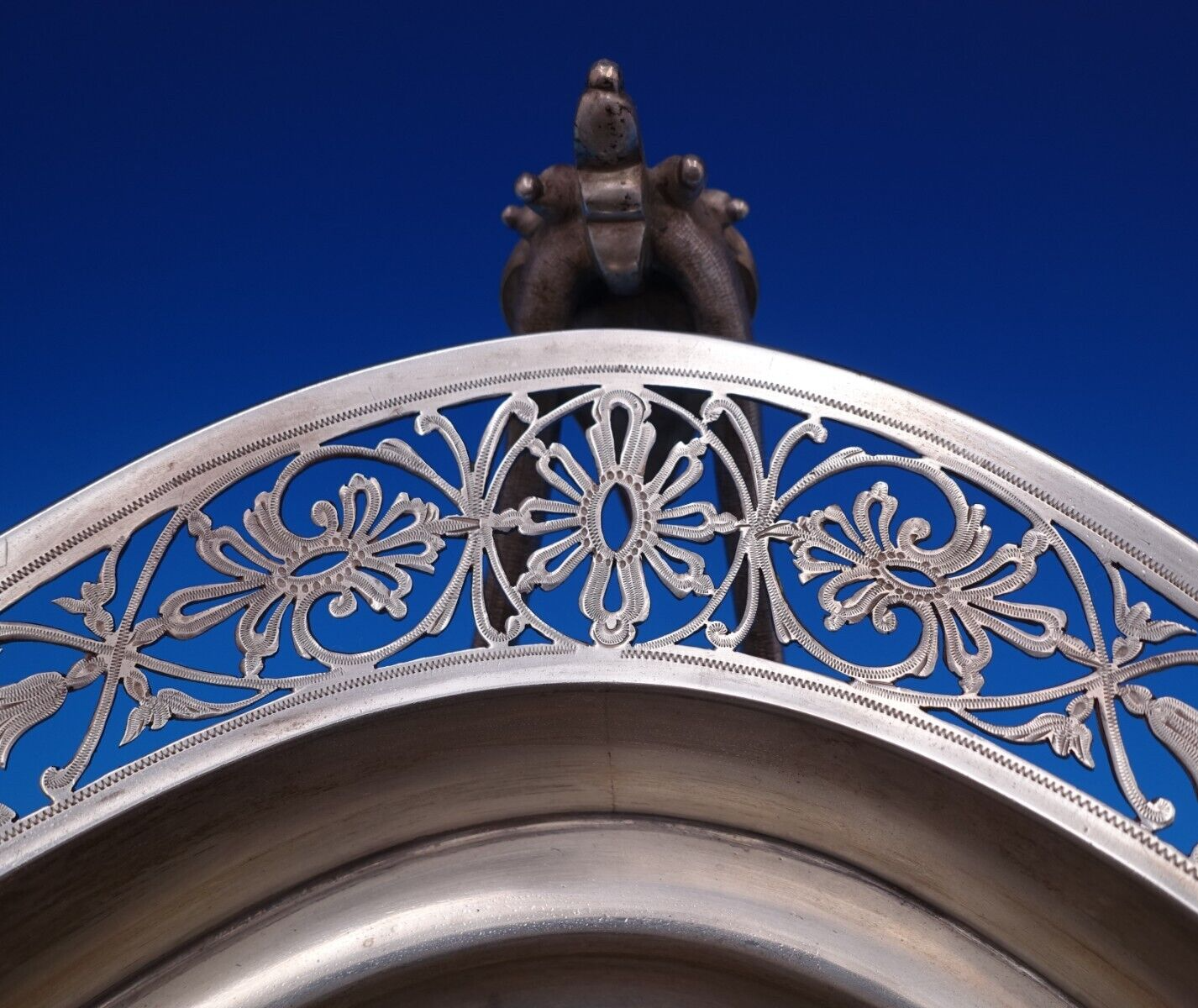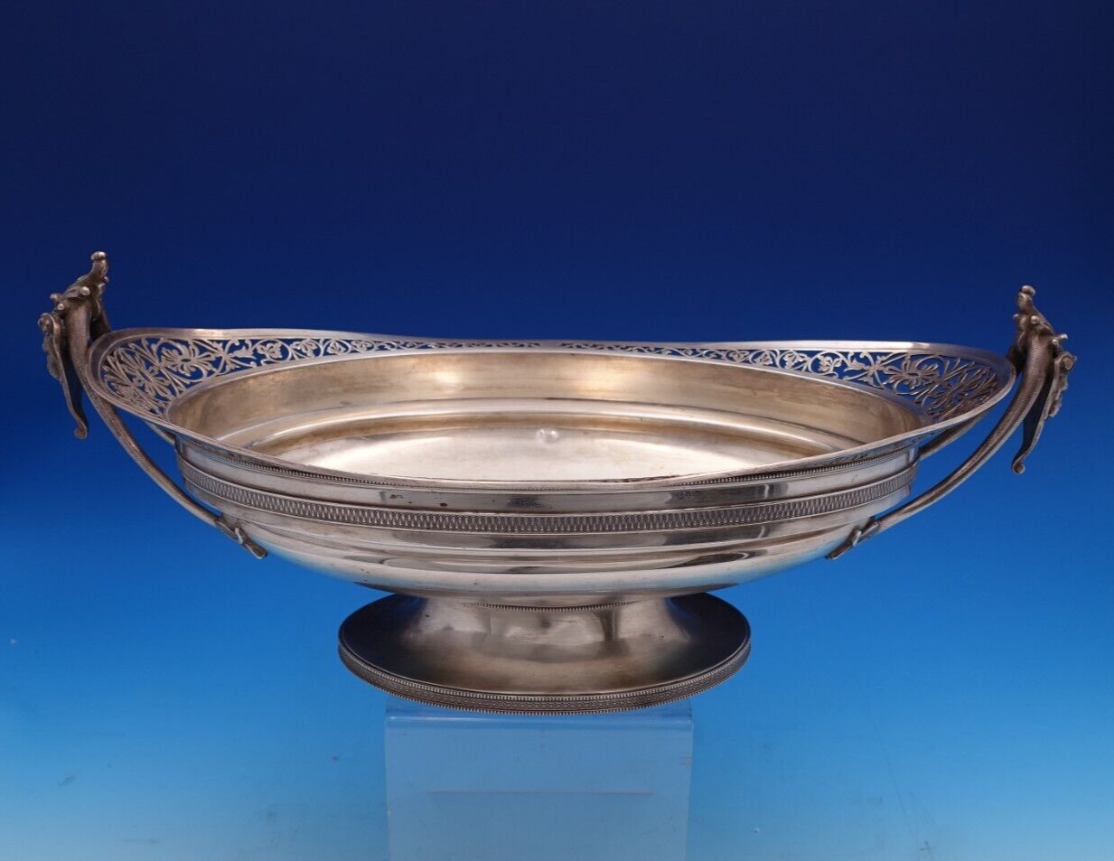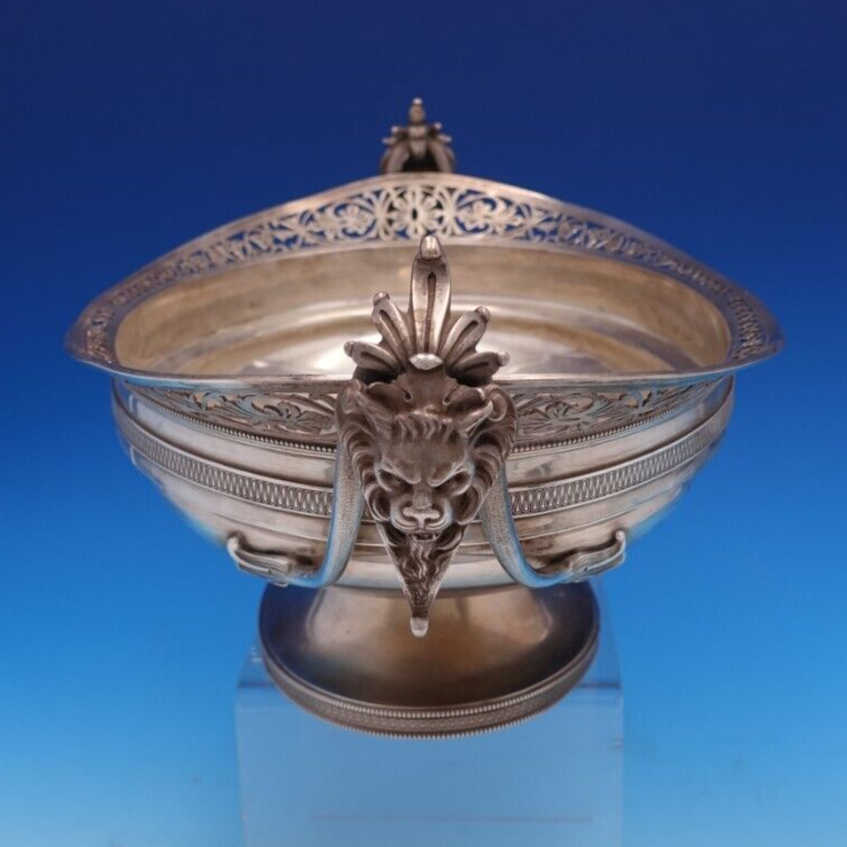 Stunning Lion by Gorham sterling silver centerpiece marked #130, circa 1870. This piece features figural lion finials and has a pierced and beaded rim.