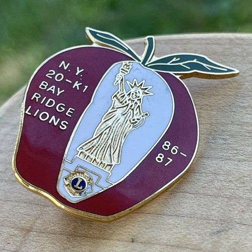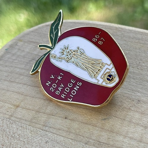 - Lions Club Lapel Pin NY 20-KI Bay Ridge Lions 86-87 Apple 1-3/4"
