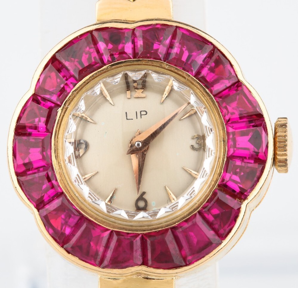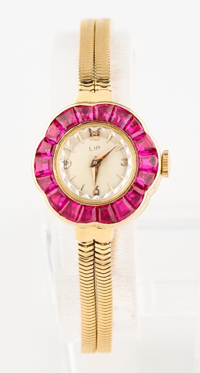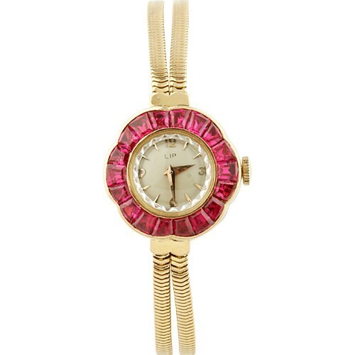 - Lip Rubí Bisel Correa Manual 18k Oro Amarillo Mujer Reloj W/ Oro Banda