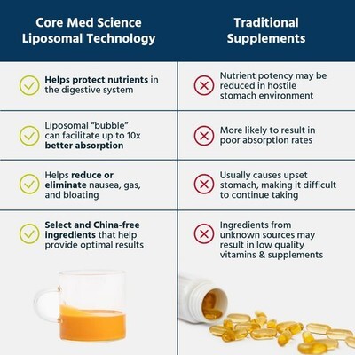 Boost your health with Core Med Science Liposomal Curcumin with Resveratrol! This physician-formulated liquid supplement is designed to support focus and clarity, heart and joint health, cellular health, and mood.