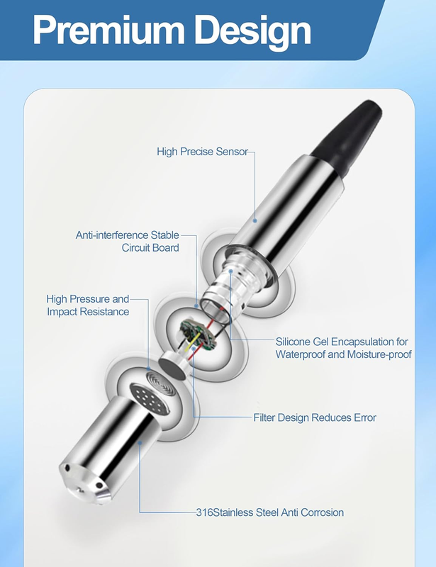 [Accurate Detecting] The Liquid Level Sensor Cable features a high precision silicon diffusion input level transmitter that provides more accurate detecting and monitoring of water levels. This ensures greater reliability and optimal performance