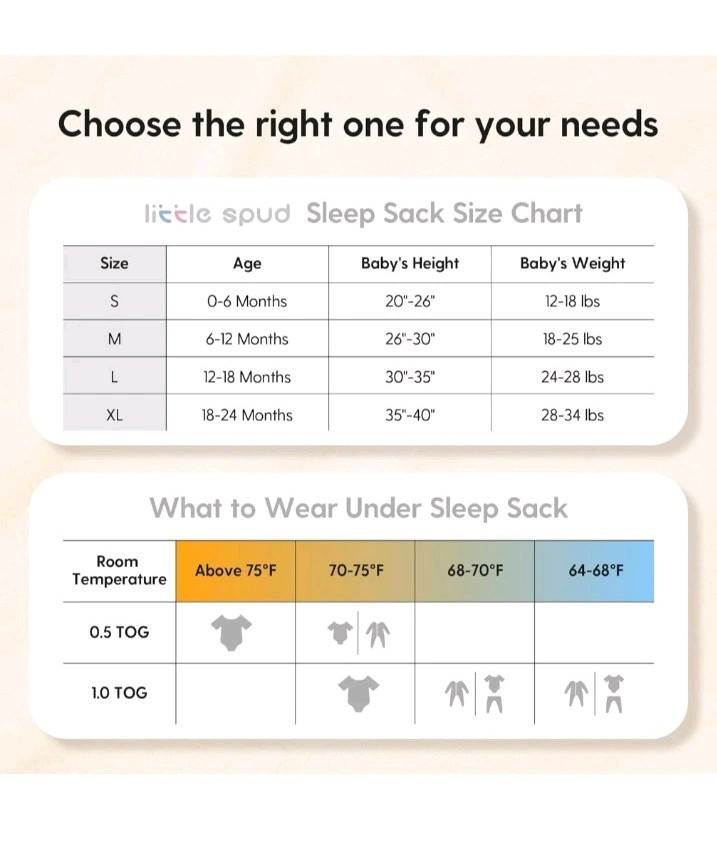 ?4-Layer Soft Breathable Fabric?LITTLE SPUD baby sleep sack is made of 4 layers of flexible and breathable fabric, which blended 70% rayon and 30% organic cotton. This baby sleeping bag is buttery soft in texture, while also providing superior breathability and moisture absorption. It will not harm the delicate skin of babies.