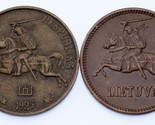 Lituanie Set 2-Coin // 1925 10 Centu (XF) 1936 5 Centai (Au)