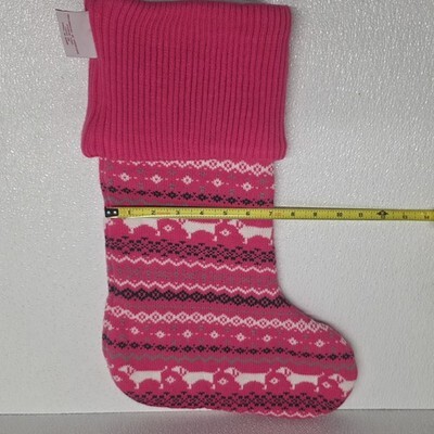 Live Love Bark Pink Knit Dog Christmas Stocking . Images show actual item that will ship.