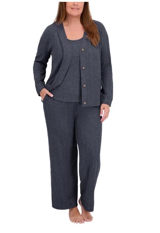 - Live2Lounge Womens Lounge Pajama Set Navy Blue 3-Piece Stretch Soft Logo
