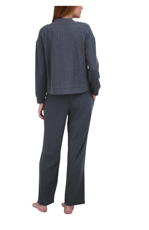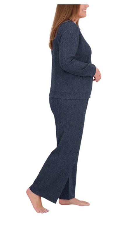 Live2Lounge Womens Lounge Pajama Set Navy Blue 3-Piece Stretch Soft Logo