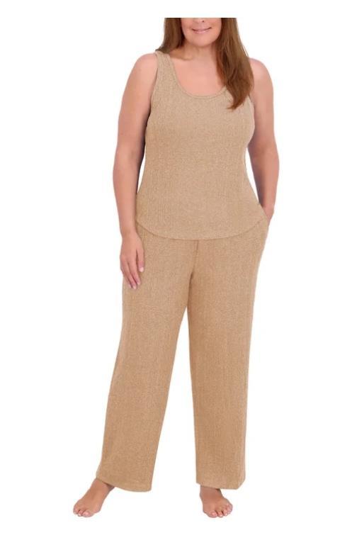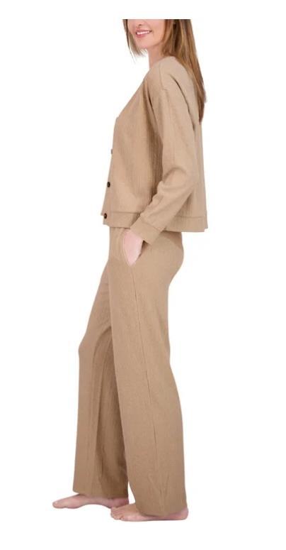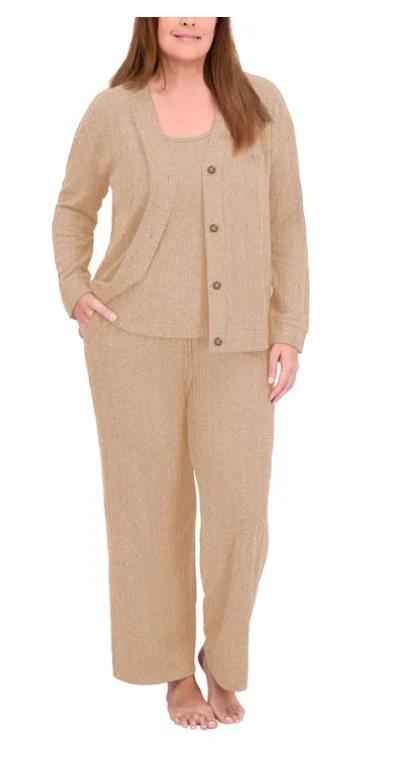 - Live2Lounge Womens Lounge Pajama Set Tan 3-Piece Stretch Soft Logo Elastic Waist