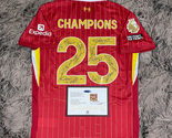 ? Crafted with premium materials, this shirt mirrors Liverpool’s 2024/25 home kit in stunning gold champion detail. ???? Boasts the printed autographs of the entire first-team squad – a must-have for any fan or collector!