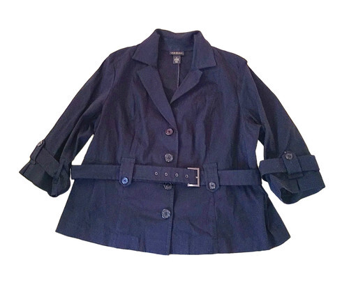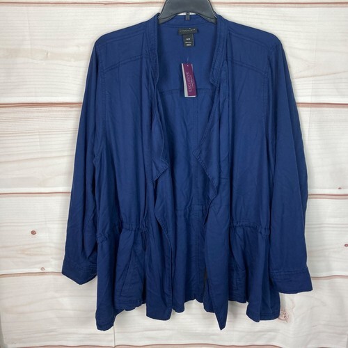 - Livi Womens Open Front Coat Blue Stretch Waterfall Lace High Low Plus 26/28 New