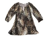 Keywords: animal print dress, leopard print, tunic dress, Liz Claiborne, balloon sleeves, v-neck dress, work wear, casual dress, polyester dress, brown dress, abstract print, fashion