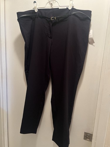 The mid-rise and classic fit make these pants suitable for any occasion, especially business meetings. The skinny leg style and belted feature add a touch of sophistication. These pants are available in size 18 and are perfect for any woman looking for a comfortable and stylish addition to their wardrobe.