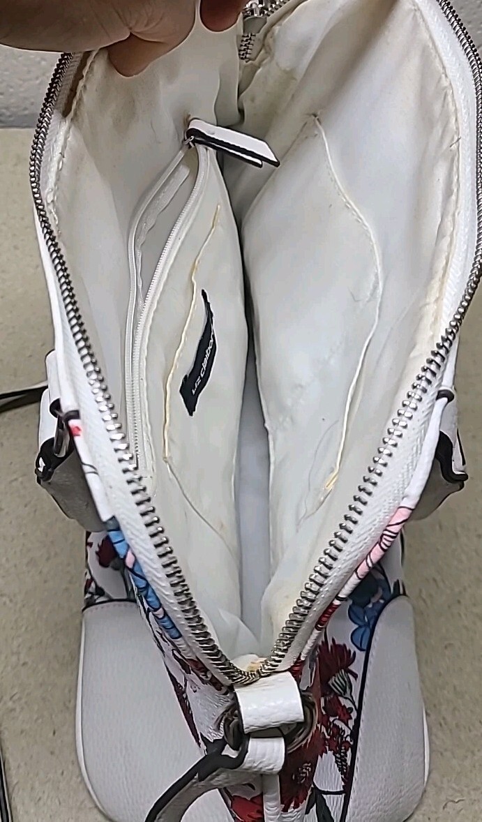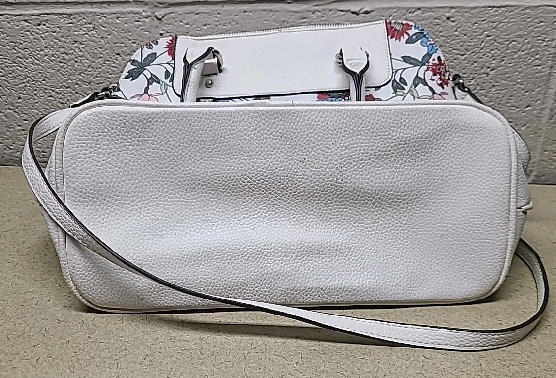 Liz Claiborne White Floral Satchel Purse Bag with Silver Accents - BEAUTIFUL