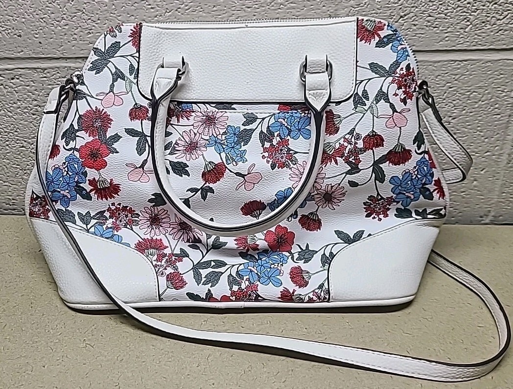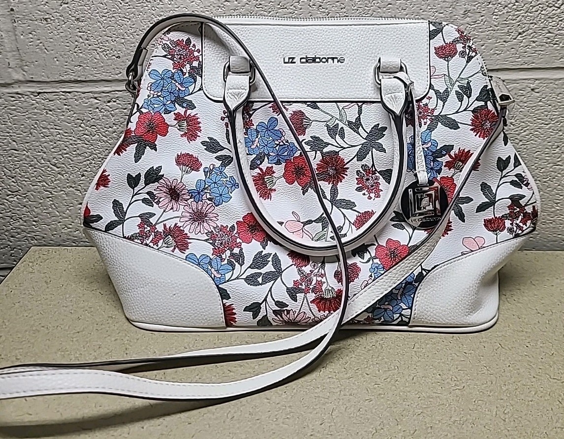 - Liz Claiborne White Floral Satchel Purse Bag with Silver Accents - BEAUTIFUL