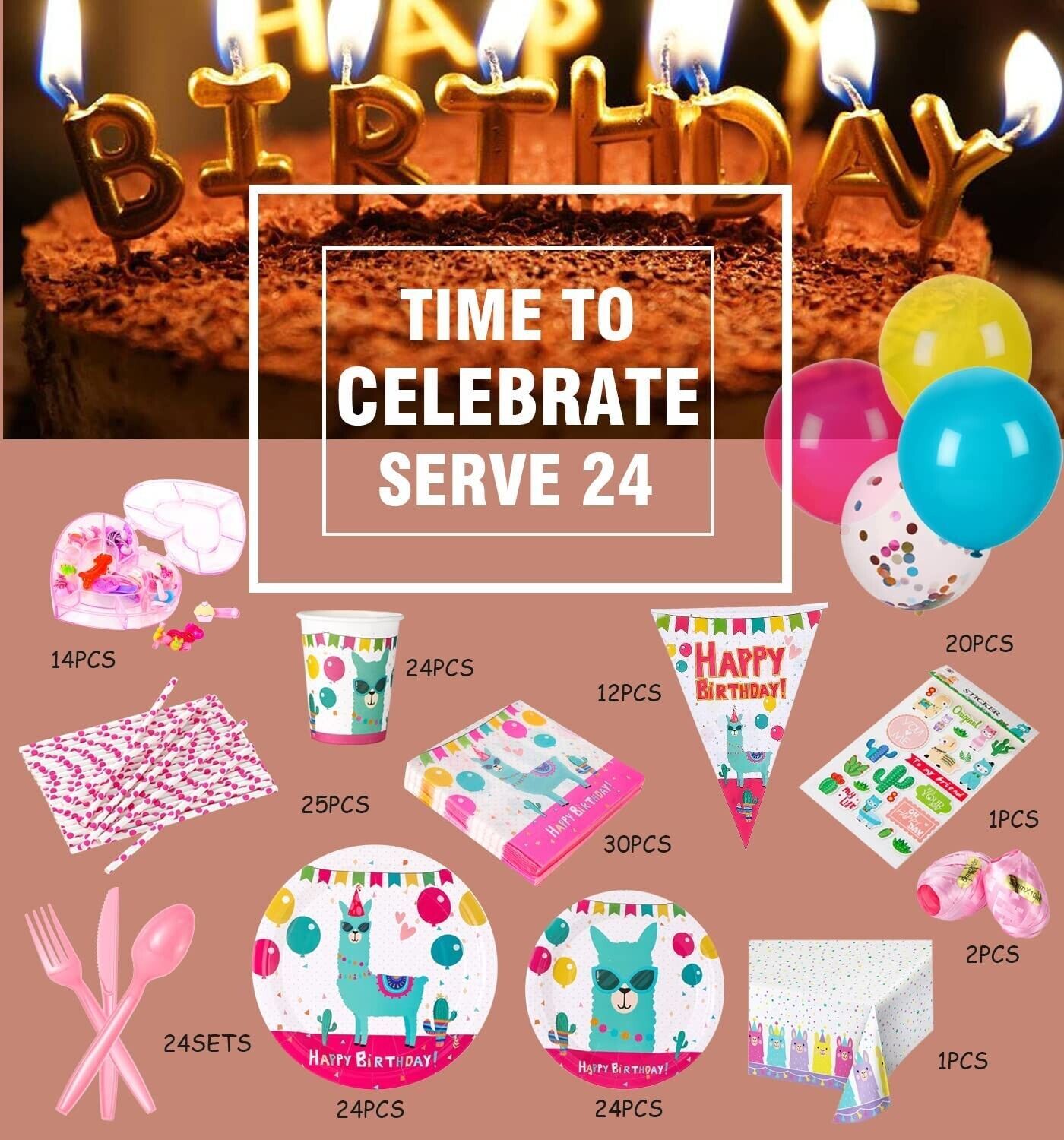 - Llama Cactus Party Supplies Set x24 Alpaca Girl Birthday Paper Tableware Balloon