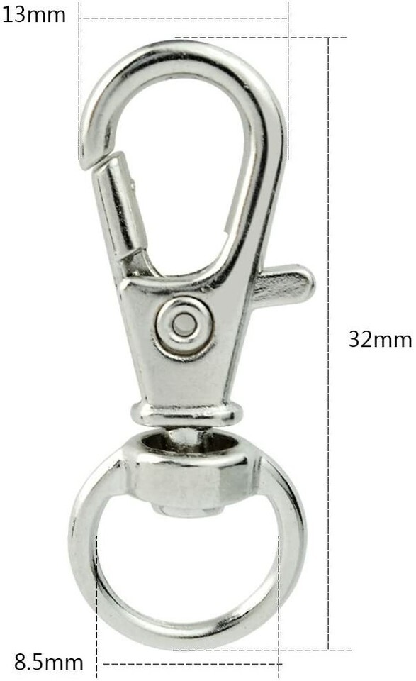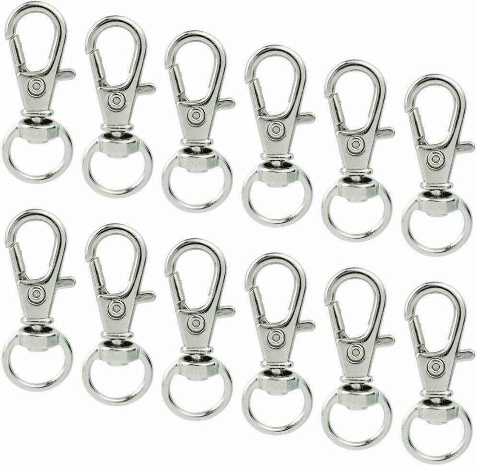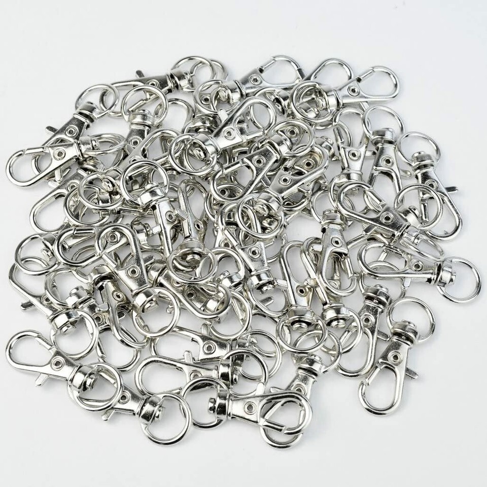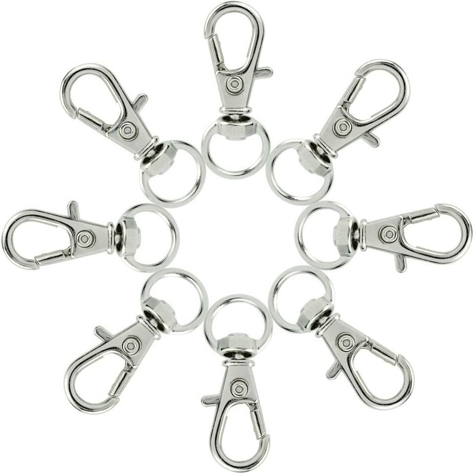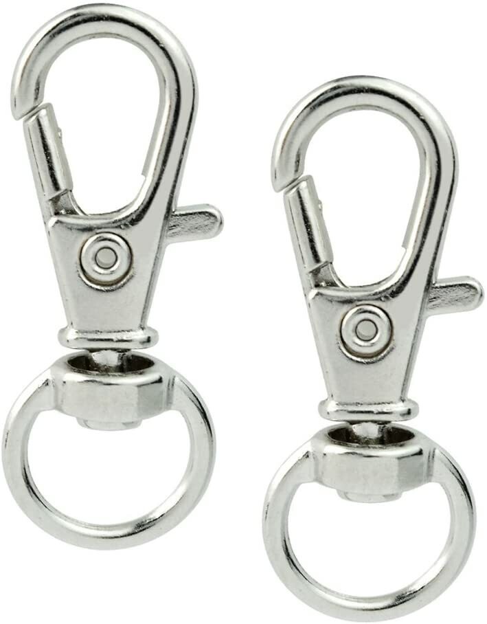 Material: These clasps are made by high quality Zinc alloy, Color: Silver. They are durable.They are easily clip your keys to your purse or belt loop, holds car remotes as well. Each order comes in a package of 50 clips.