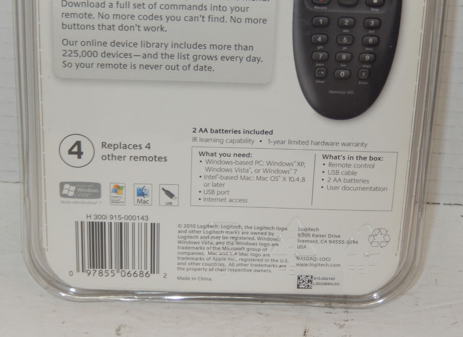 - Logitech Harmony 300i Universal Remote Control NEW Sealed 4-in-1 TV DVD Media