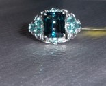 LONDON BLUE TOPAZ OCTAGON SOLITAIRE & PARAIBA APATITE PEAR RING, SIZE 10, 5.02TC