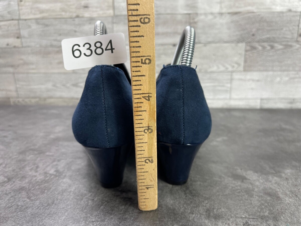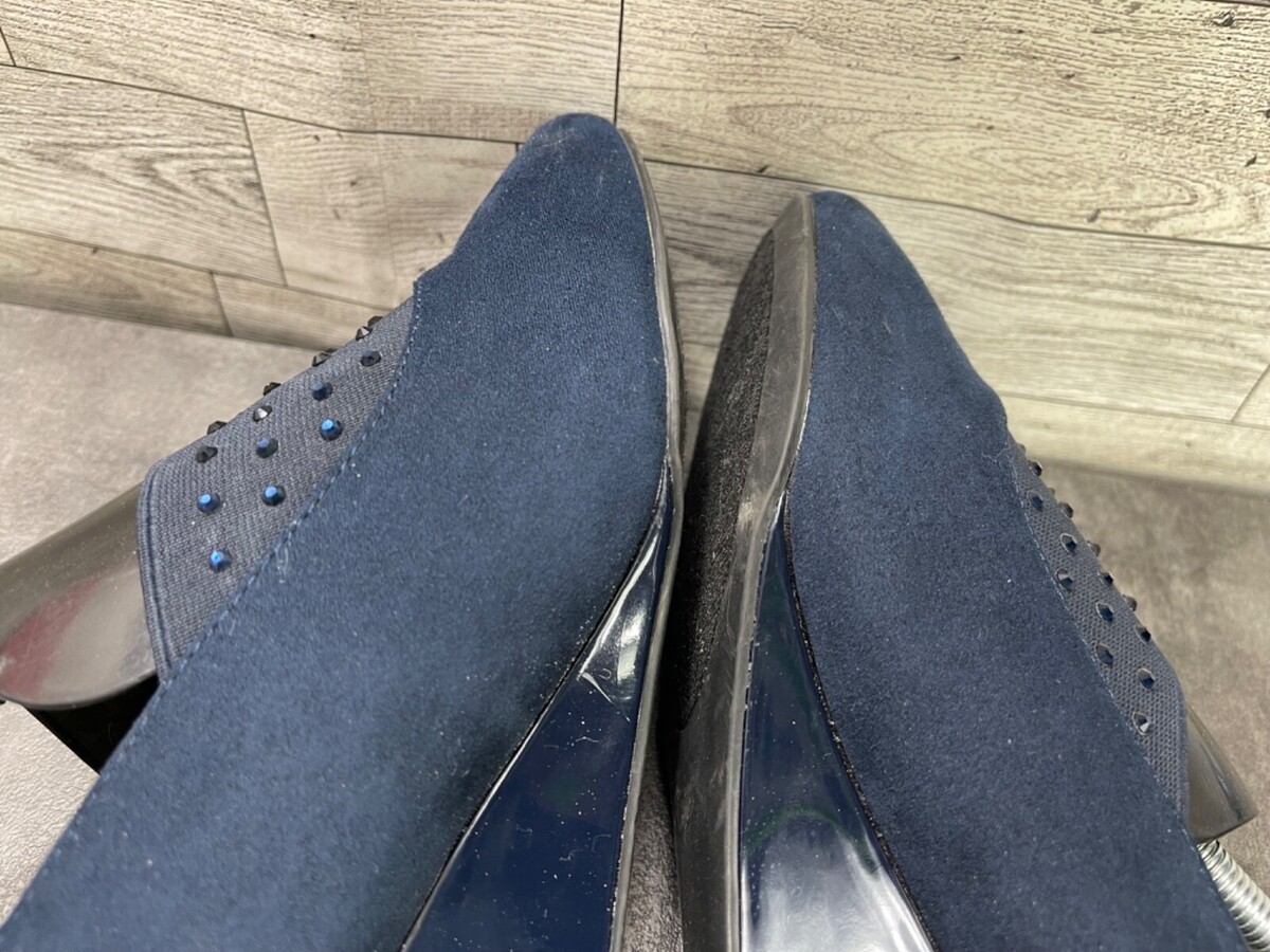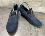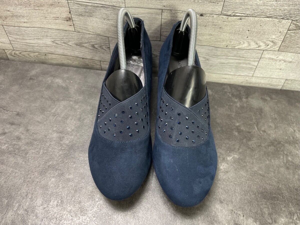 - London Fog Heels Women 9.5M Delevan Shoes Blue Suede Wedge Rhinestones Pumps