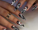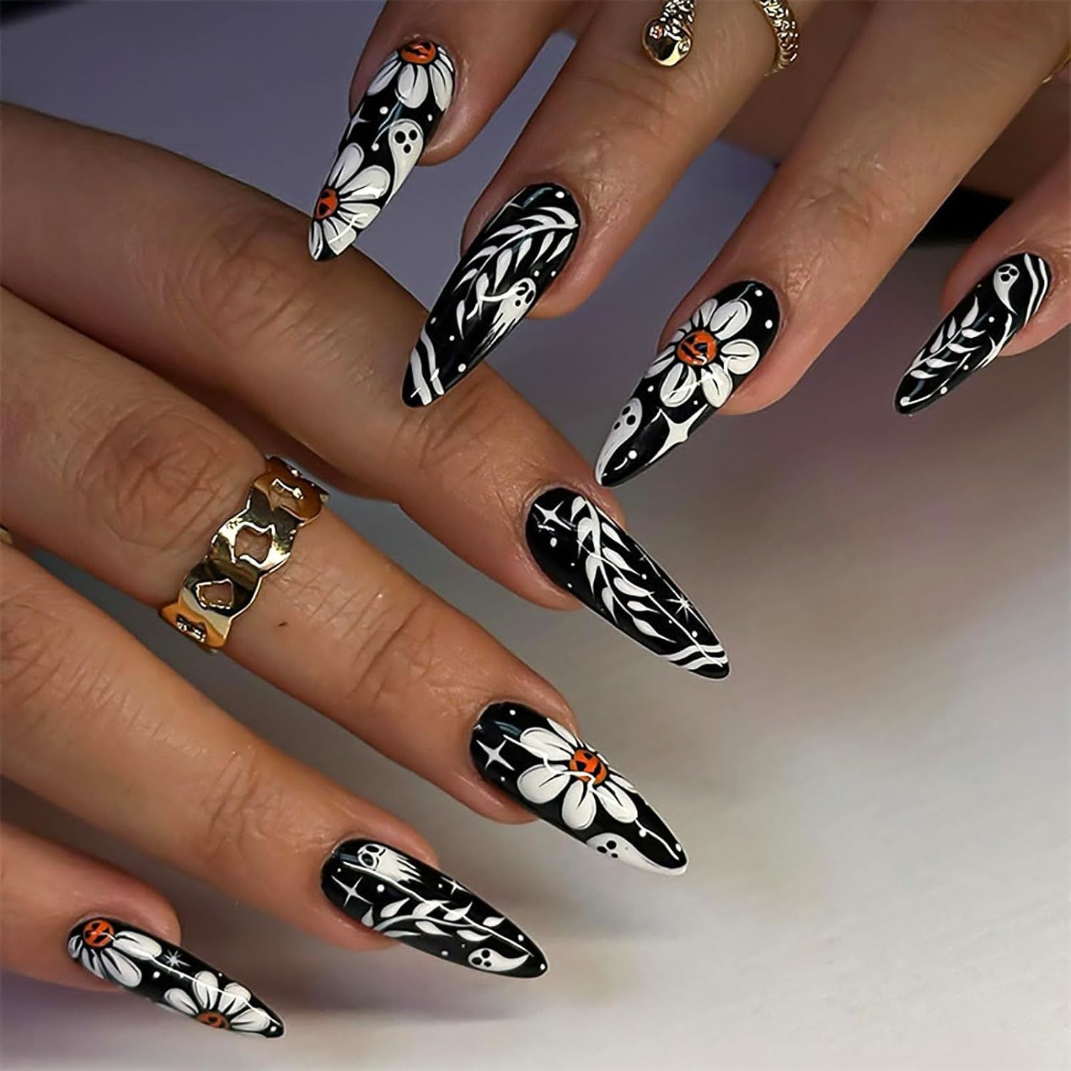 - Long Floral Ghost Ghouls Press on Stiletto Nails Halloween