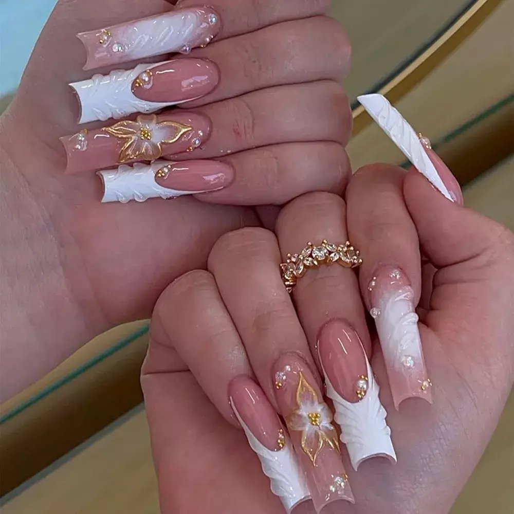 - Long Square Press on Nails,Handmade Acrylic Press on Nails with Designs