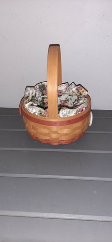 Longaberger 1998 Mother's Day Rings Things Basket with Tie-On and Liner and Plastic Protector- Pink Weave