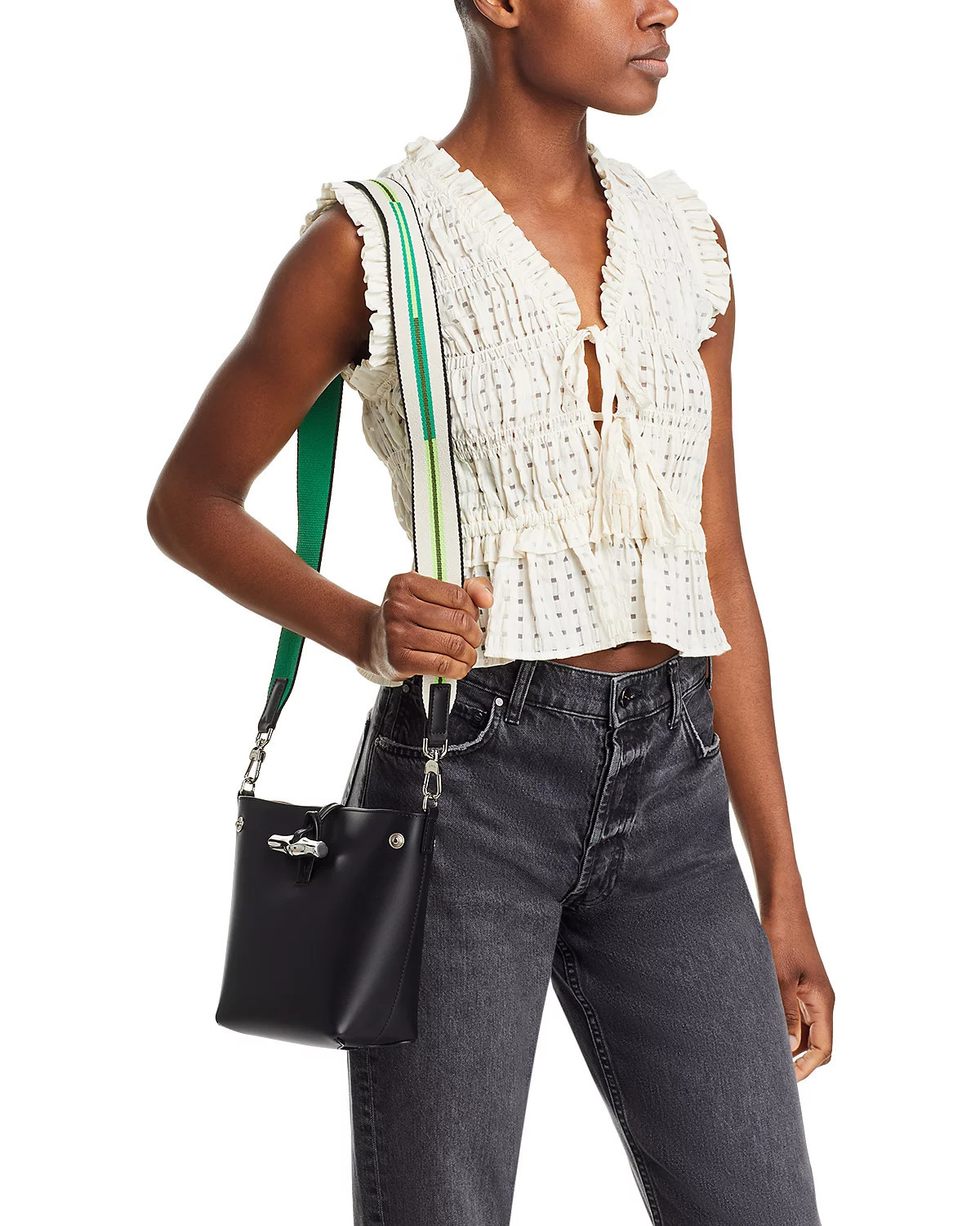 - Longchamp Le Pliage Roseau XS Leather Crossbody Bucket Bag ~NEW~ Black