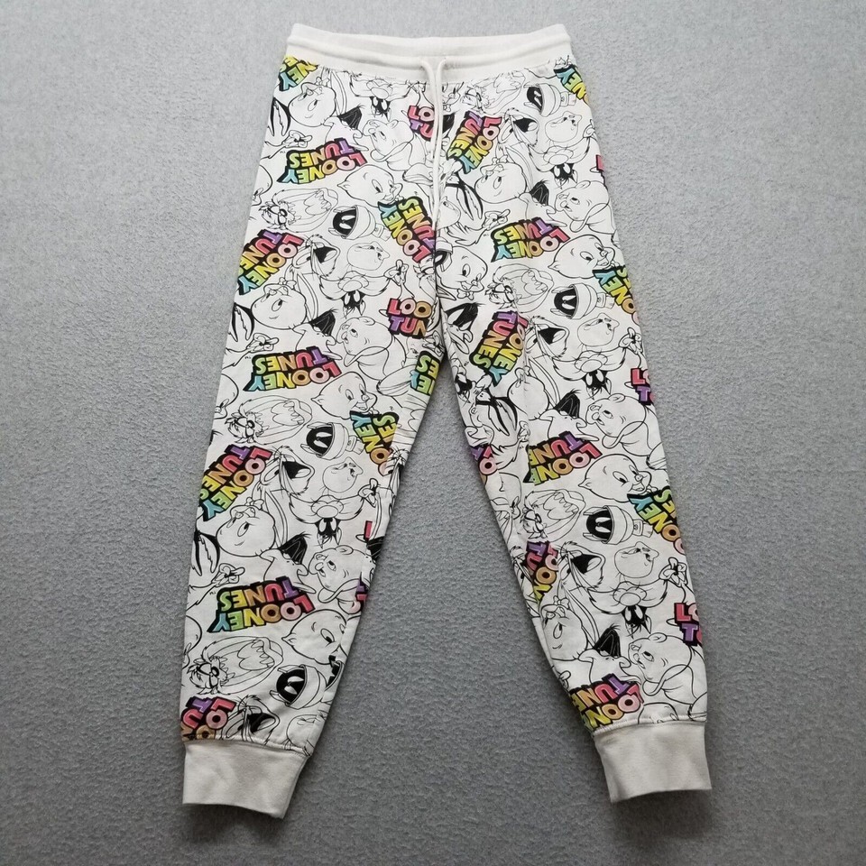 - Looney Tunes Sweatpants Womens Medium White Casual Drawstring All Over Print