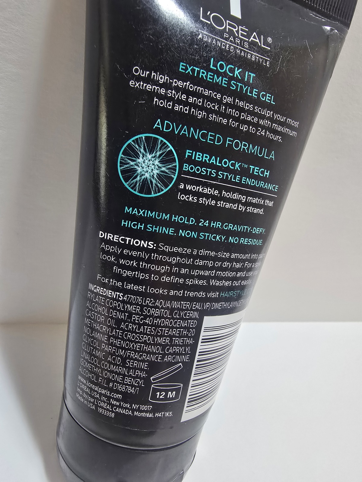 L'oreal Paris Lock it Extreme Style Hair Gel Maximum Hold High Shine 5.1 FL Oz Rare. Condition is new, unused. Tube does show light wear from age. This is a discontinued, very hard to find item.