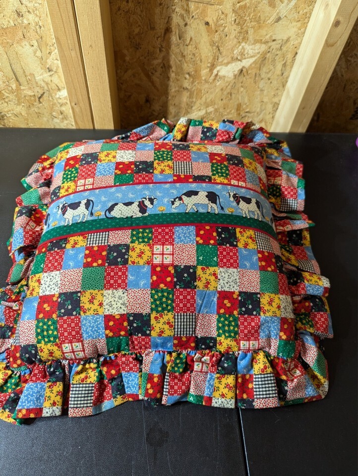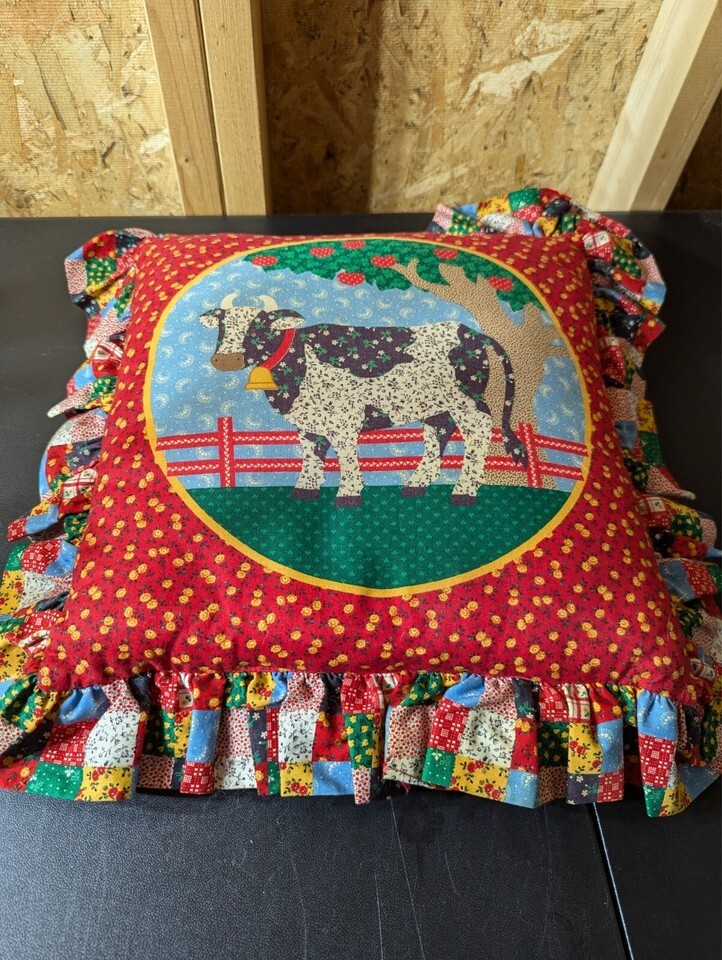 - Lorena Cheese House cow pillow with patchwork ruffle added