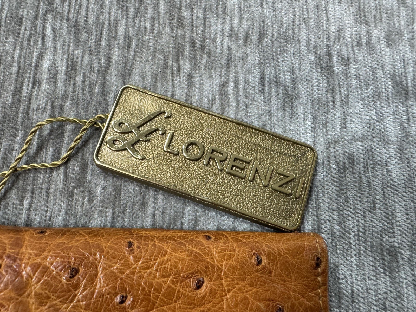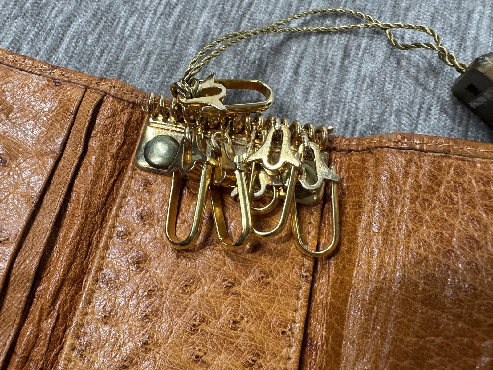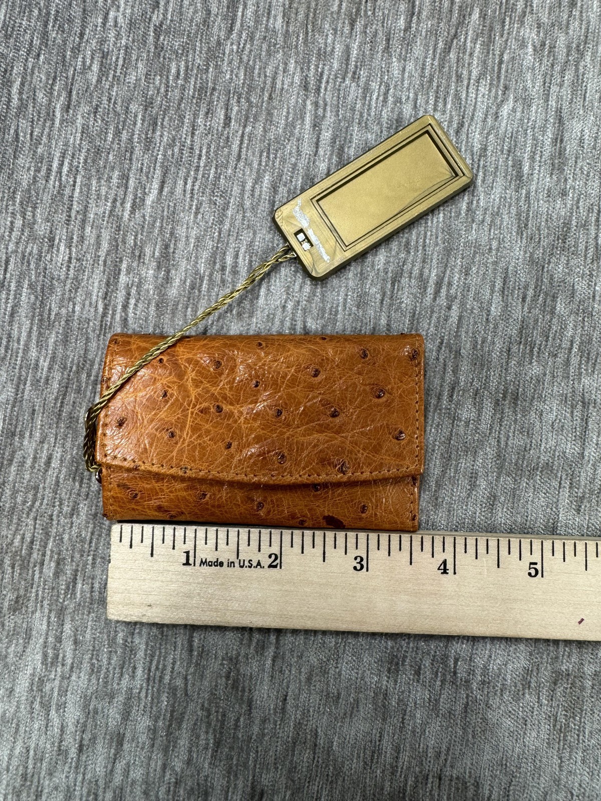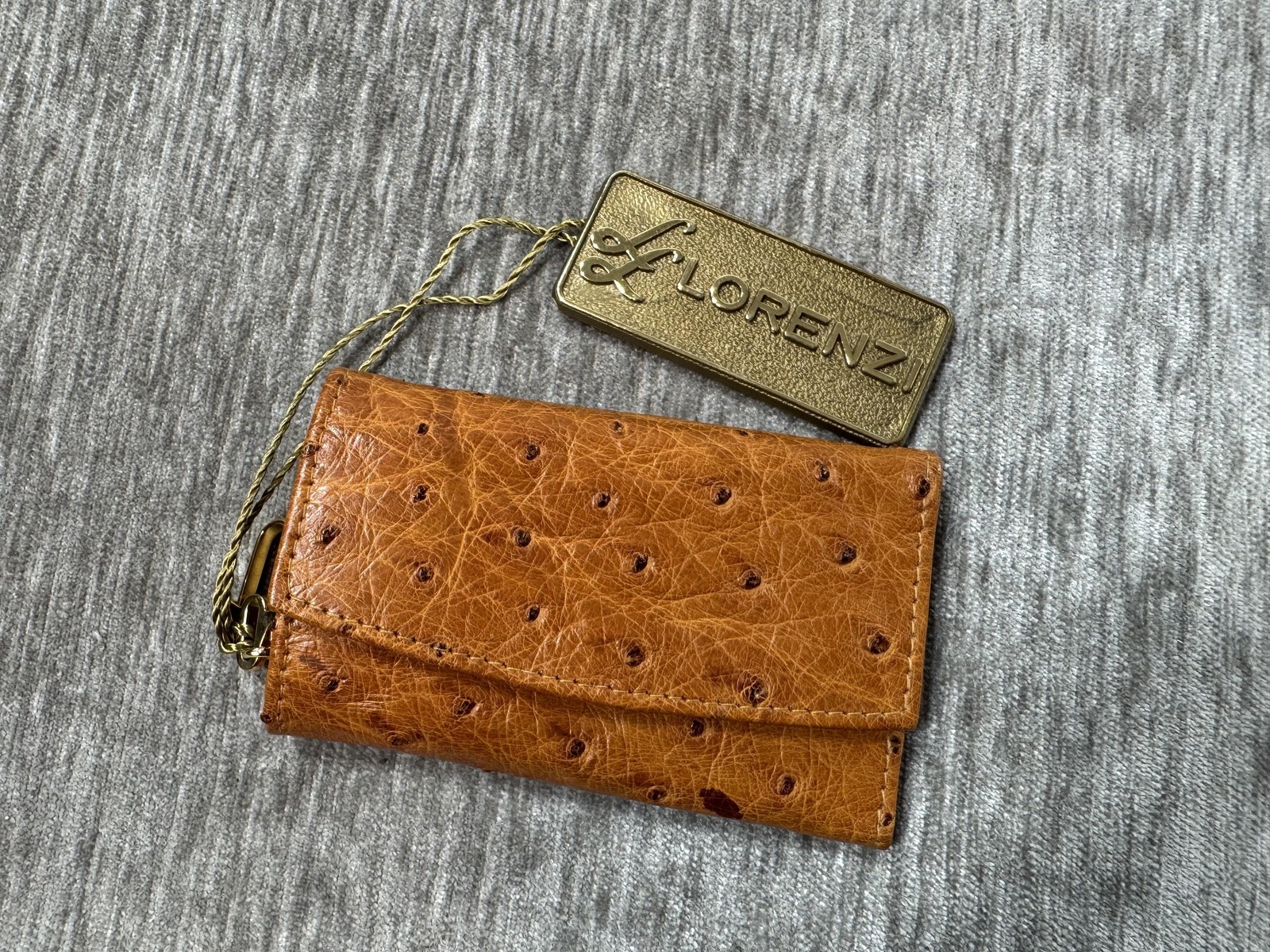 - Lorenzi Key Case Holder One Size Tan Ostrich Print Leather Trifold 6 Hooks
