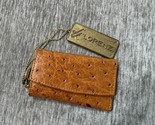 Lorenzi Key Case Holder One Size Tan Ostrich Print Leather Trifold 6 Hooks